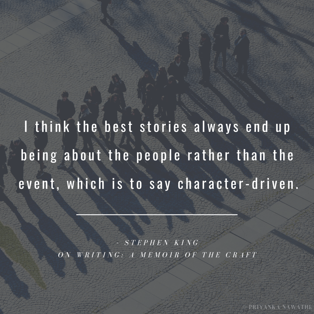 It is our characters’ actions that give us the next event as a reaction. Nothing moves without solid characters.